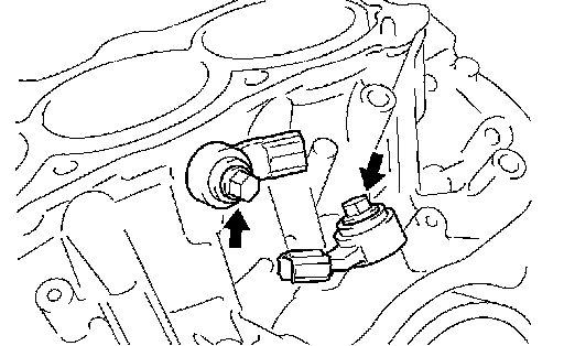 b. Remove the 2 bolts, then remove the 2 knock sensors.