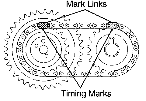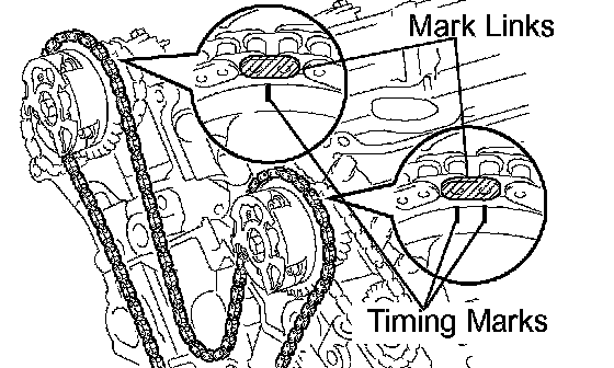 a. Align the yellow mark links with the timing marks (1 dot mark) of camshaft timing gears as shown in the illustration.