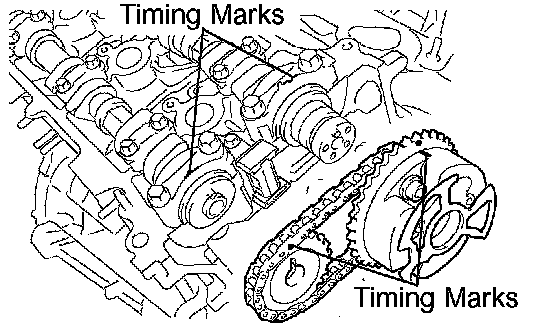 (1) Align the timing marks of the camshaft timing gears and bearing caps.
