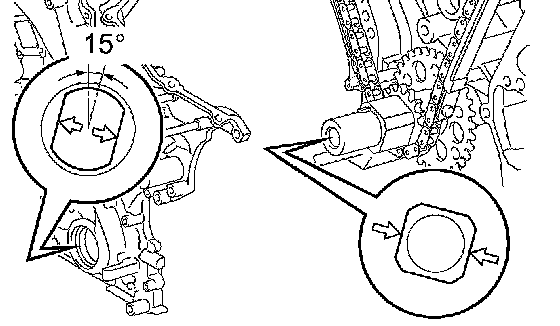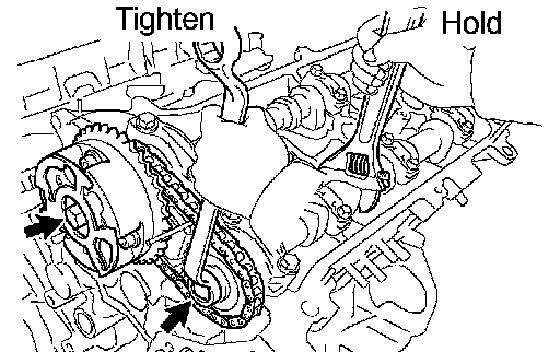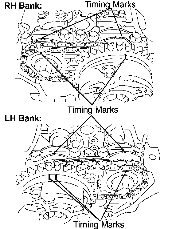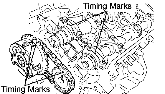 b. Align the timing marks on the camshaft timing gears with the timing marks on the bearing caps, and install the camshaft timing gears with the chain onto the LH camshafts.