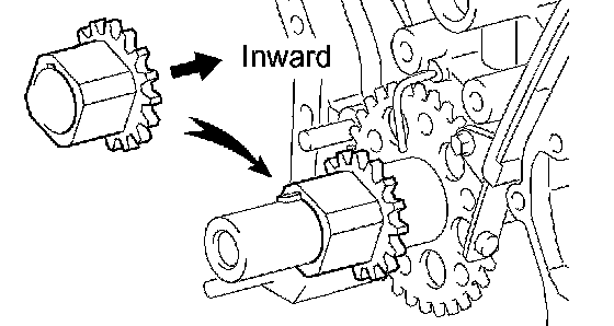 b. Install the timing gear onto the crankshaft with the gear side facing inward.