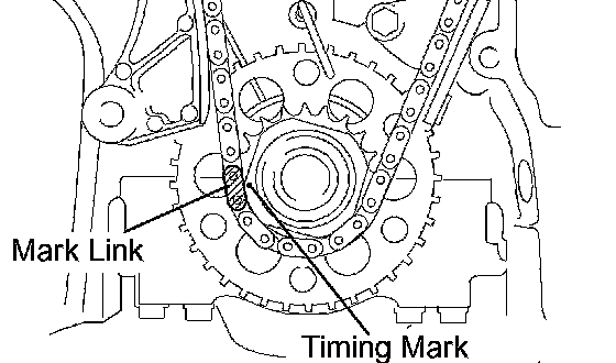 b. Align the yellow mark link with the timing mark of the crankshaft timing gear.