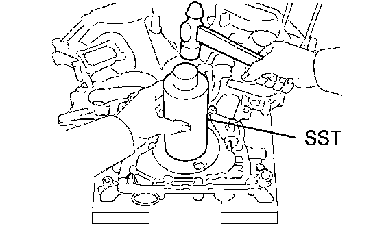 a. Using SST and a hammer, tap in a new oil seal until its surface is flush with the timing chain cover edge.
