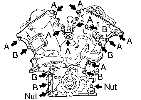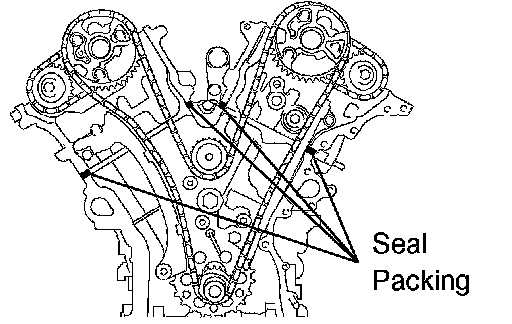 - Install the timing chain cover within 3 minutes of applying the seal packing. After installation, the timing chain cover bolts and nuts must be tightened within 15 minutes. Otherwise, the seal packing must be re moved and reapplied.