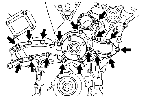 - After installing the timing chain cover, install the water pump within 15 minutes.