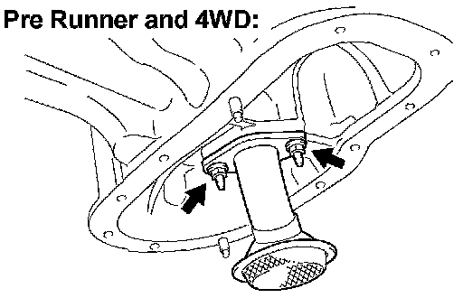 b. Install a new gasket, then install the oil strainer with the 2 nuts (for Pre Runner and 4WD).