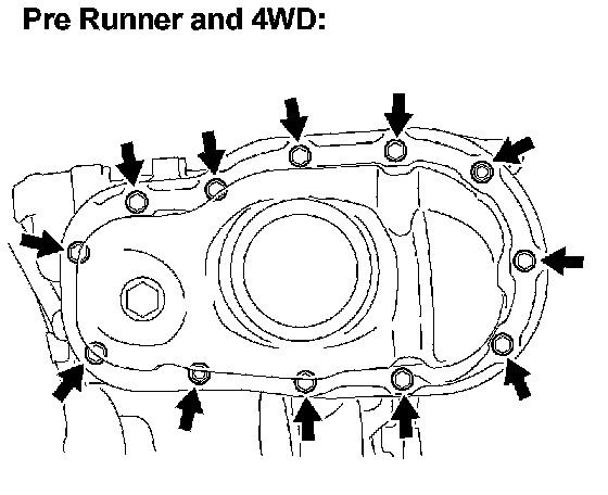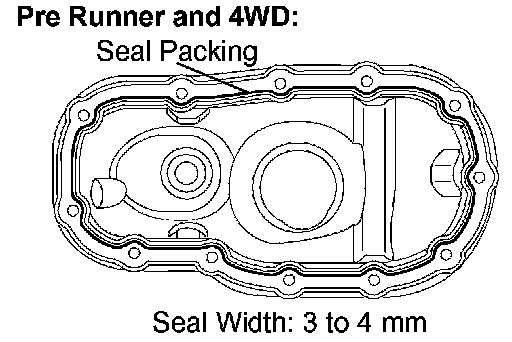 c. Apply a continuous bead of seal packing (diameter 3 to 4 mm (0.12 to 0.16 inch)) as shown in the illustration (for Pre Runner and 4WD).