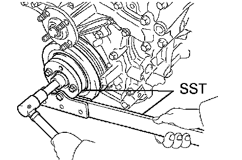 a. Using SST, fix the pulley and tighten the bolt.
