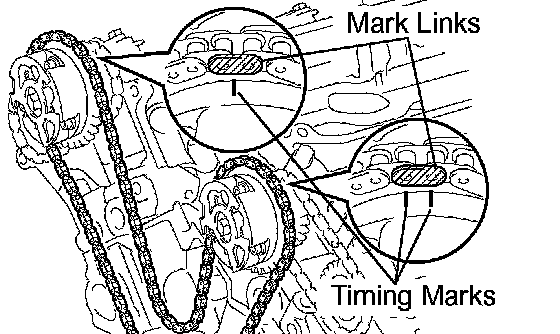 c. Align the orange mark links with the timing marks of the camshaft timing gears, and install the chain.