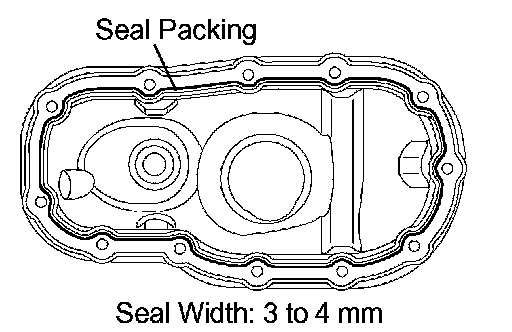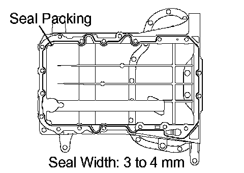 c. Apply a continuous bead of seal packing (diameter 3 to 4 mm (0.12 to 0.16 inch)) to the oil pan as shown in the illustration.