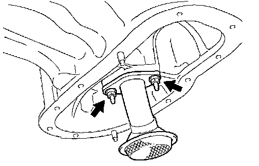 a. Install a new gasket and the oil strainer with the 2 nuts.