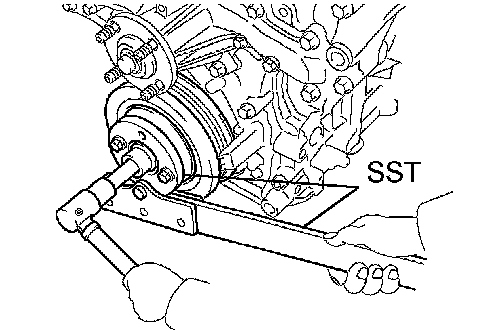 a. Using SST, install the pulley set bolt.