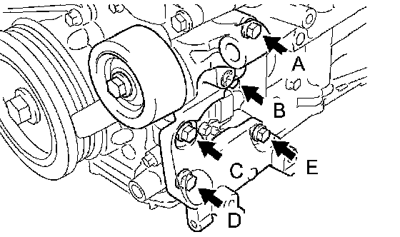 b. Finger-tighten the bolts in positions A and E and install the bracket.