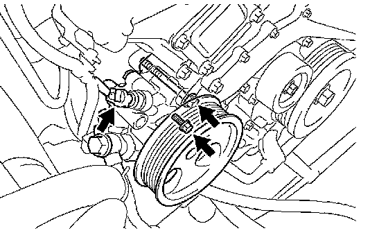 NOTICE: Do not hit the pulley with other parts when installing the vane pump.
