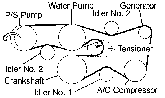 (1) Put the V-ribbed belt on all parts except the P/S pump, as shown in the illustration.