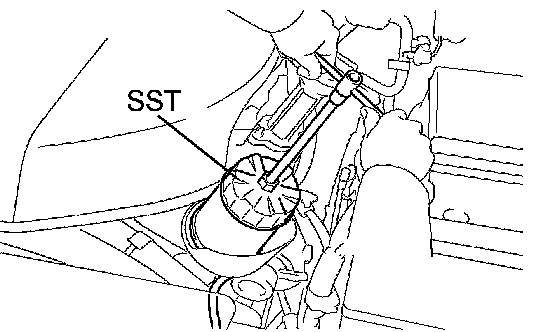 h. Using SST, remove the oil filter.