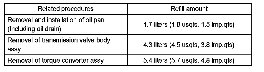 AUTOMATIC TRANSMISSION FLUID (A750E/A750F)ADJUSTMENT