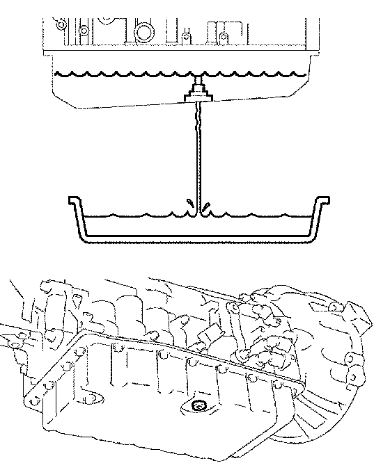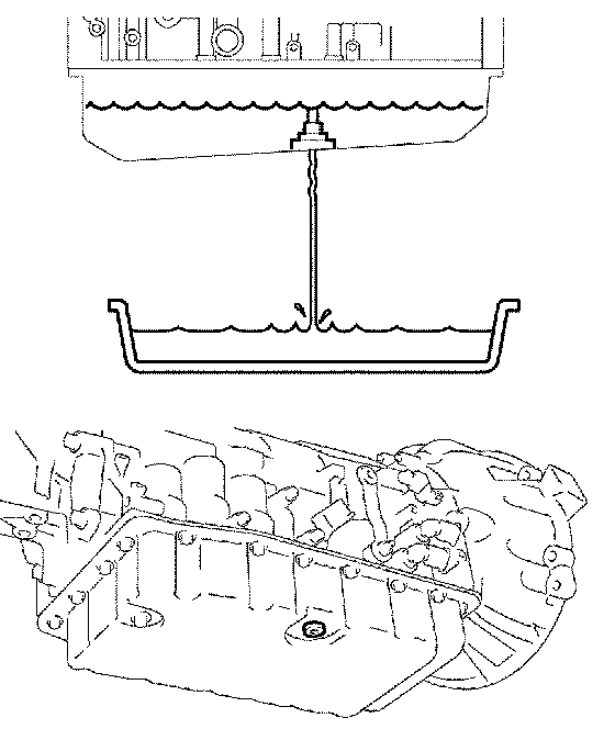 (3) Install a new gasket and overflow plug when the draining ATF starts dripping down in a trickle.