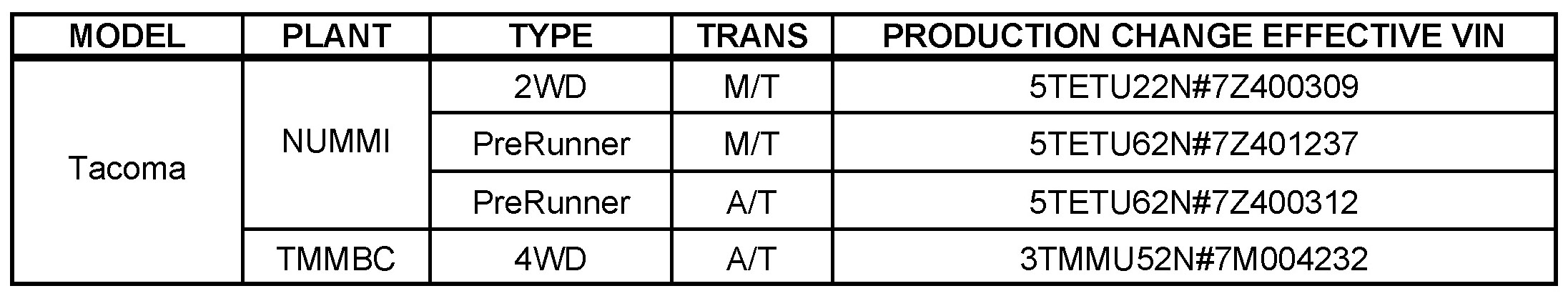 - 2005 - 2007 model year Tacoma vehicles equipped with 1GR-FE engine.