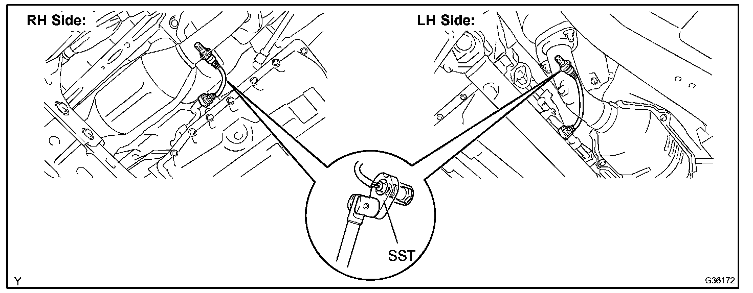 a. Using SST, install the 2 heated oxygen sensors onto the exhaust pipe.