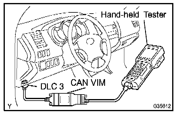 Since this system is equipped with the CAN communication, connecting the CAN VIM (VIM: Vehicle Interface Module) with hand-held tester is necessary to display any information from the ECM. (Also the communication between the hand-held tester and the ECM uses CAN communication signal.) When confirming the DTCs and any data of the ECM, connect the CAN VIM between the DLC3 and the hand-held tester.