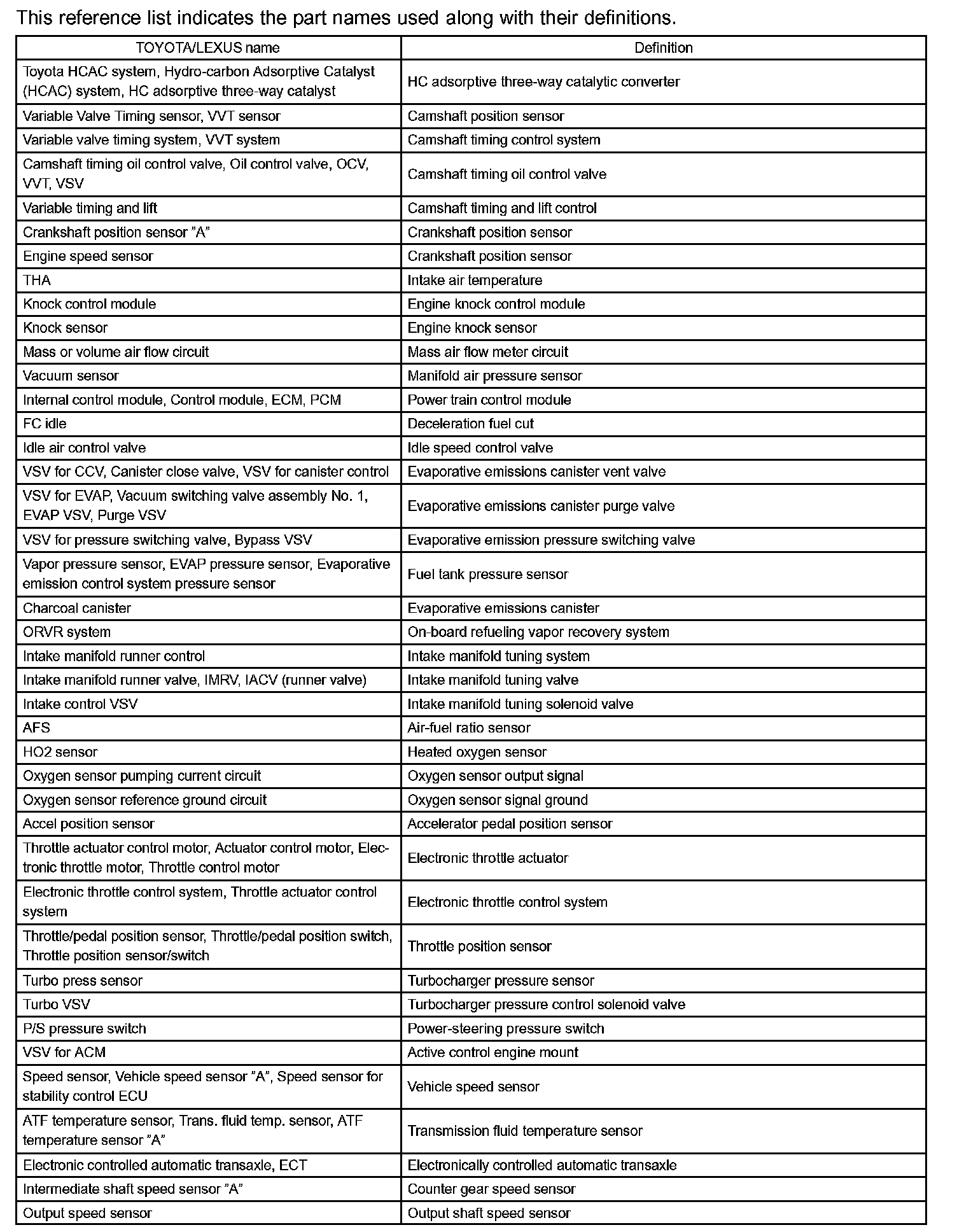 Part And System Name List Part 1: