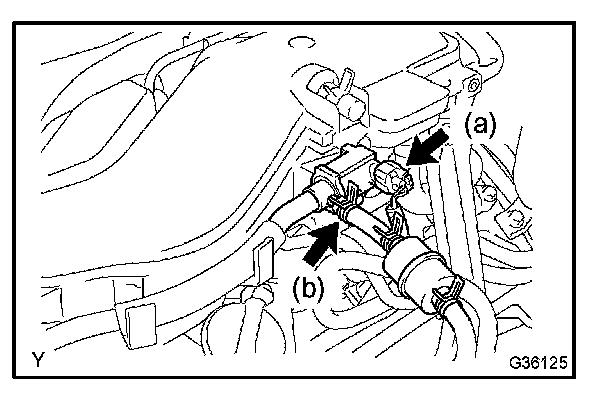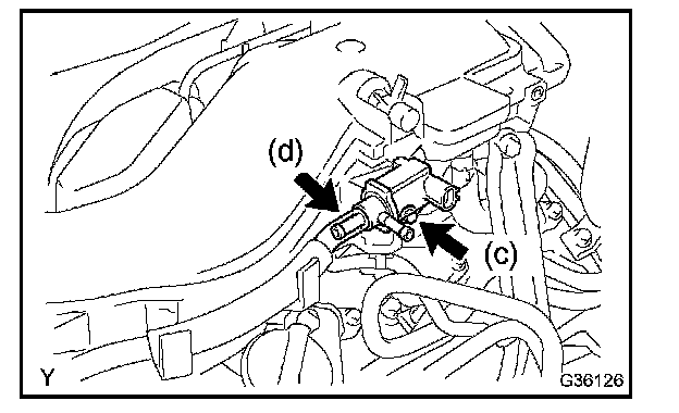 d. Disconnect the hose, then remove the vacuum switching valve.