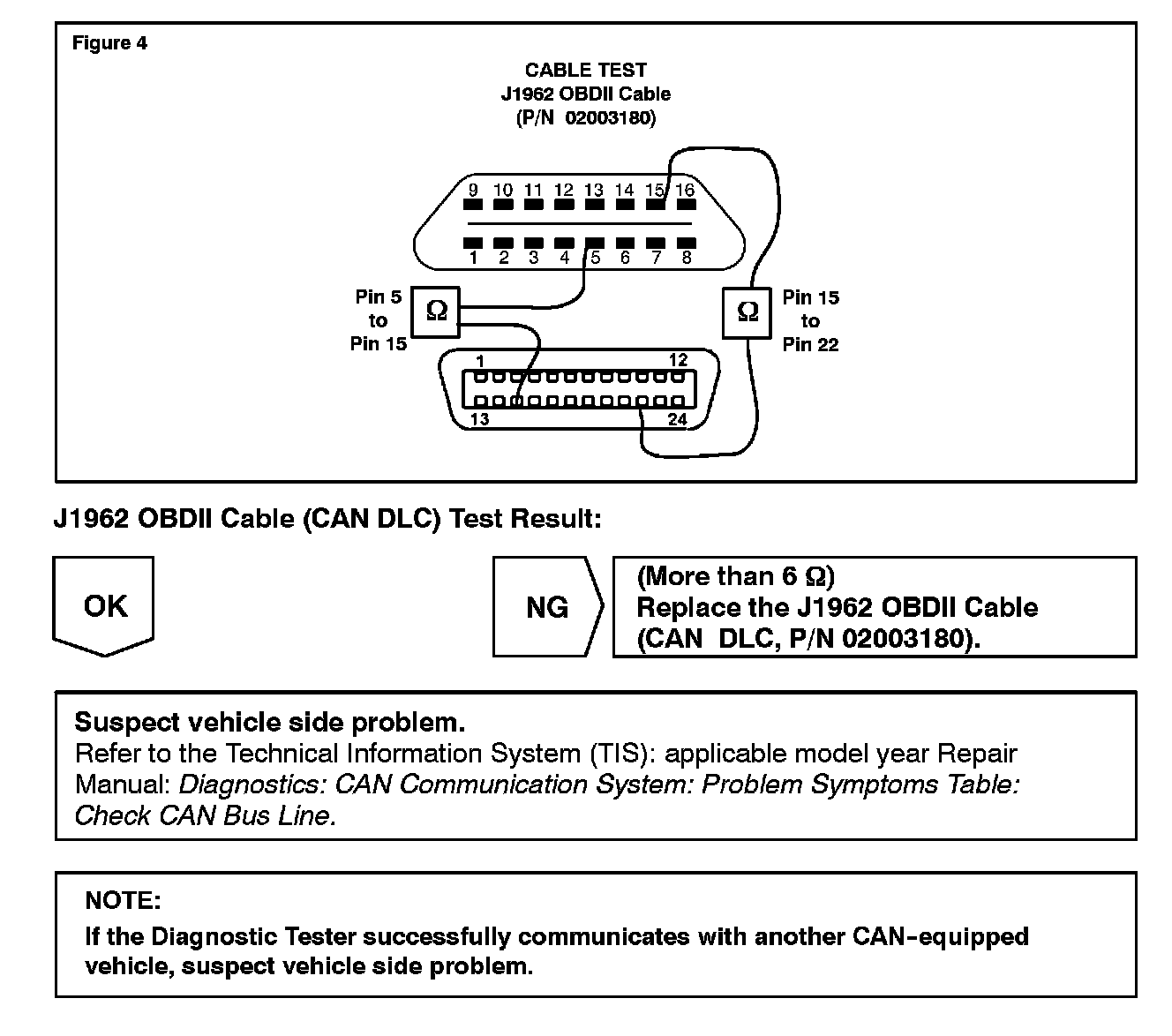 If the Diagnostic Tester fails to initialize CAN-based communication with on-board vehicle controllers, a damaged cable or inoperative CAN interface Module may be at fault. This bulletin provides test procedures to check the integrity of the Diagnostic Tester cables and the CAN interface Module.