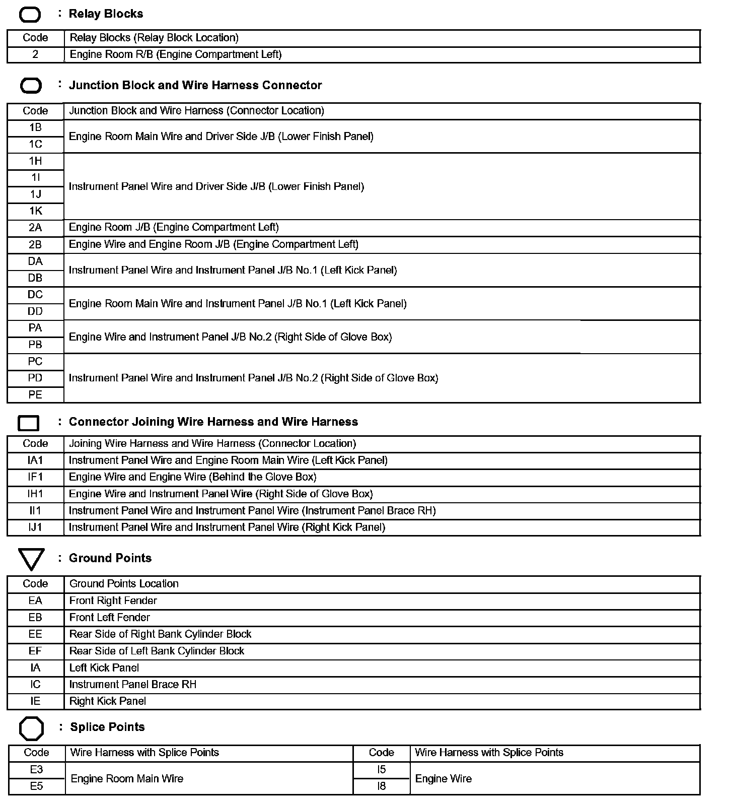 Locations: The locations of components, connectors, ground points, and splices referred to within these diagrams can be found at Vehicle Locations. Locations