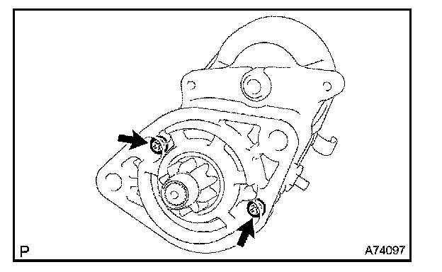 a. Remove the 2 screws, then remove the end frame from the starter yoke.