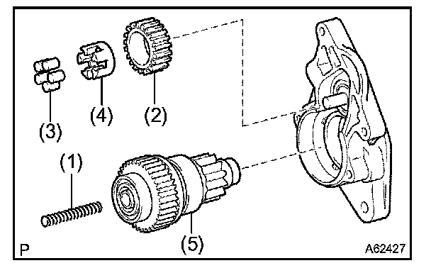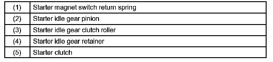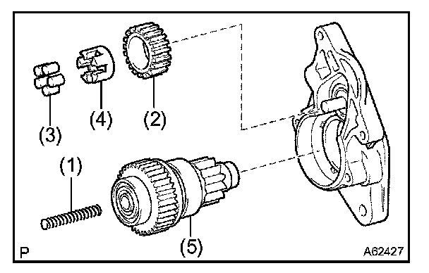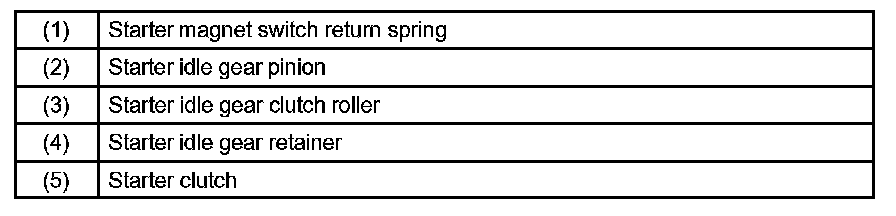 b. Apply grease to parts (2) - (5), and install all the parts below onto the starter drive housing.