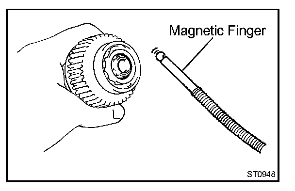 c. Using a magnetic finger, remove the steel ball from the clutch shaft hole.