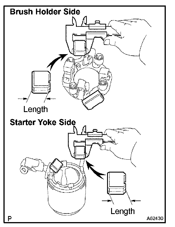If the length is less than the minimum, replace the brush holder and starter yoke.