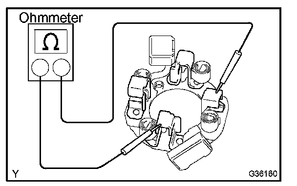 1. Using an ohmmeter, measure the resistance between the positive (+) and negative (-) brush holders.