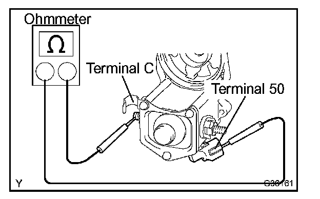 1. Using an ohmmeter, measure the resistance between terminals 50 and C.
