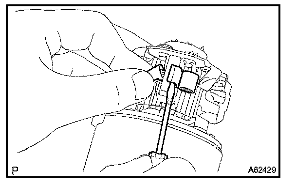 c. Using a screwdriver, hold the spring back and disconnect the 4 brushes from the brush holder.