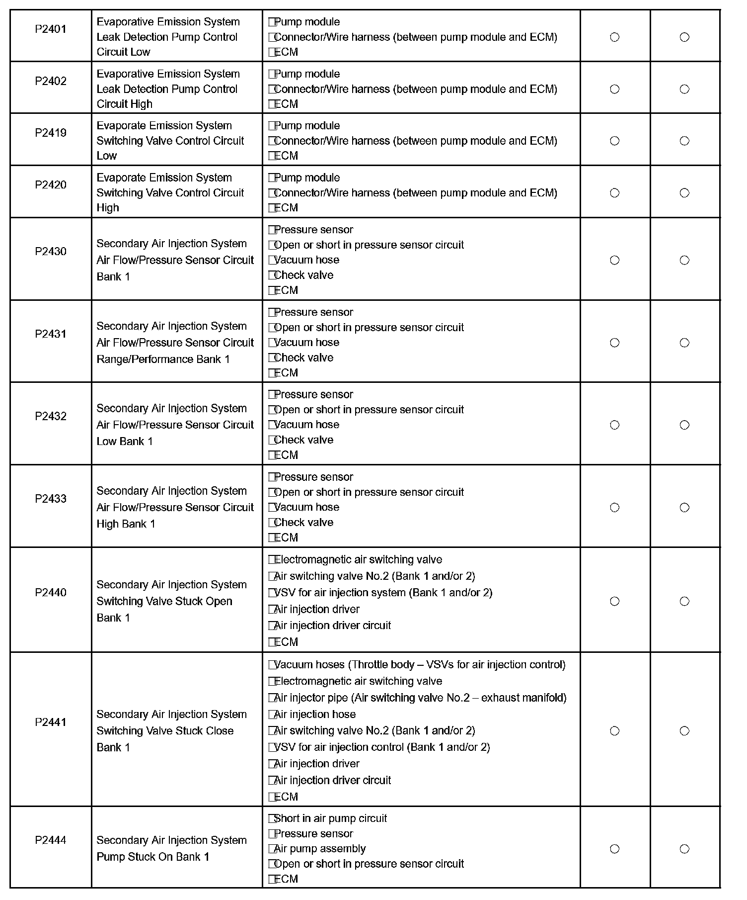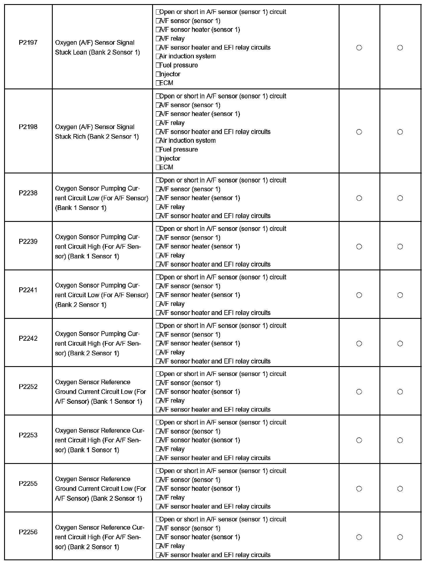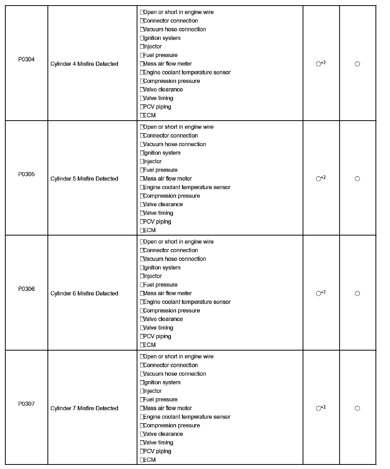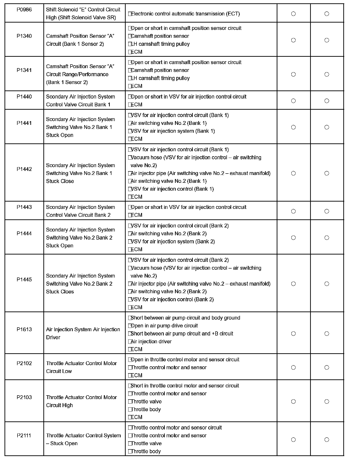 If a malfunction code is displayed during the DTC check in the check mode, check the circuit for the listed in the table. For details of each code, refer to the respective "DTC NO." in the DTC chart.