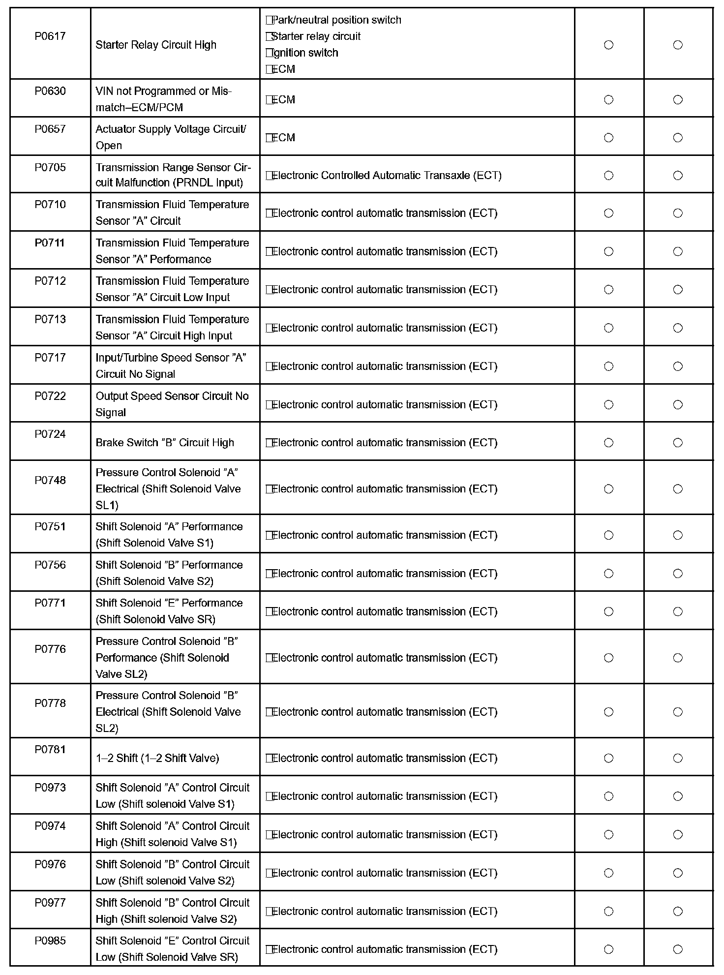 DIAGNOSTIC TROUBLE CODE CHARTHINT: Parameters listed in the chart may not be exactly the same as your reading due to the type of instrument or other factors.