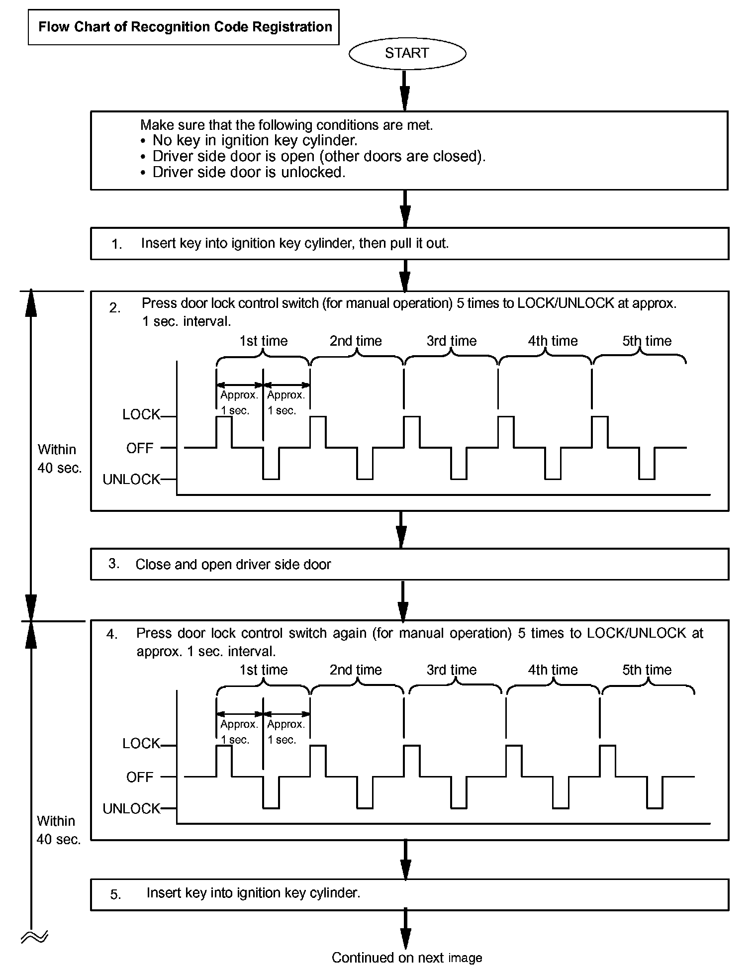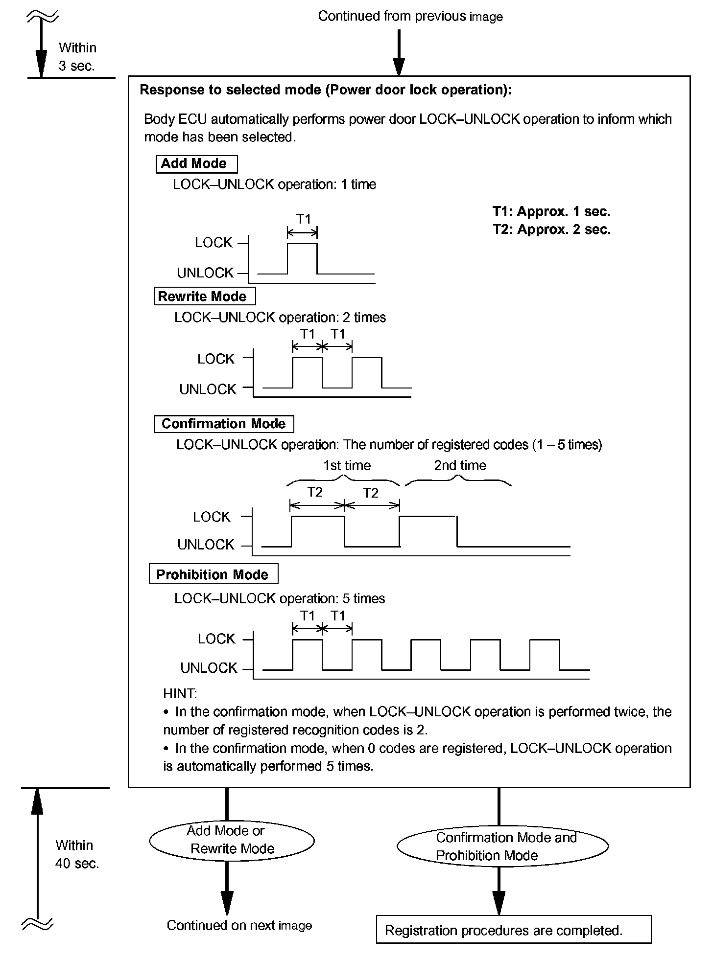 - The add mode is used to register new recognition codes while still retaining codes already registered. This mode is used when a new transmitter is added. If the number of registered codes exceeds 4, the previously registered codes will be erased in order, starting from the first registered code.