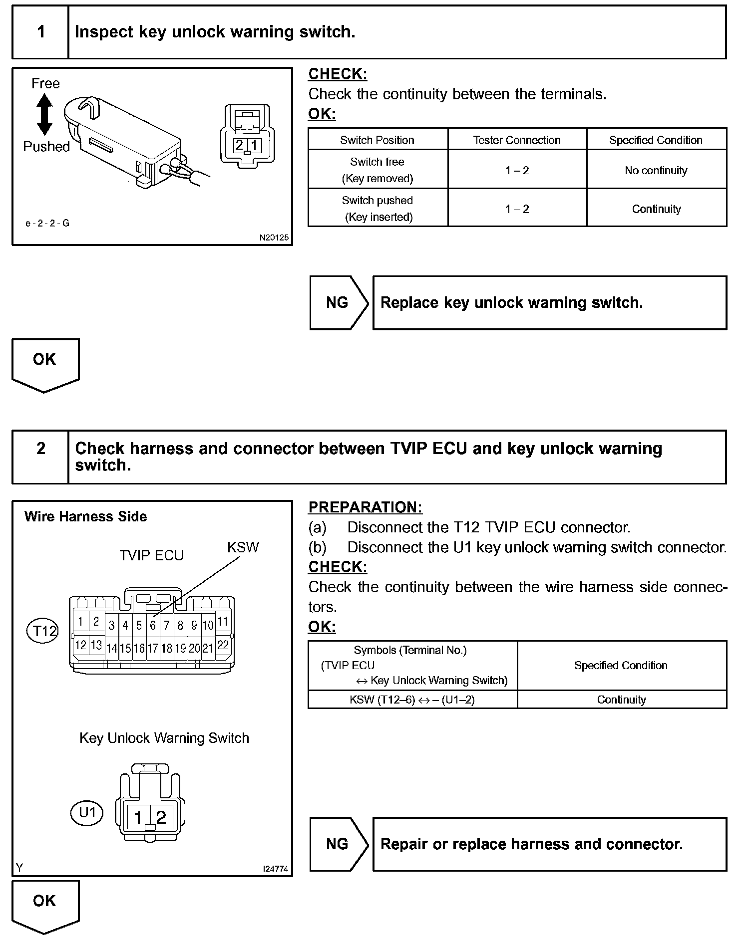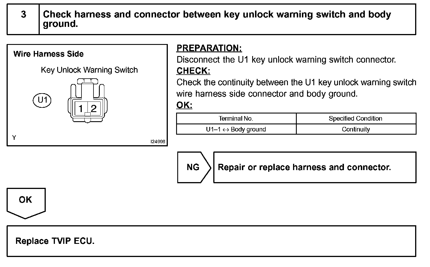 The TVIP ECU causes the key confinement prevention function to operate while the key unlock warning switch is ON.