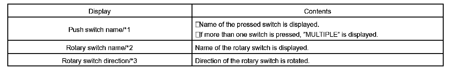 4. Operate each switch and check that the switch name and condition are correctly displayed.