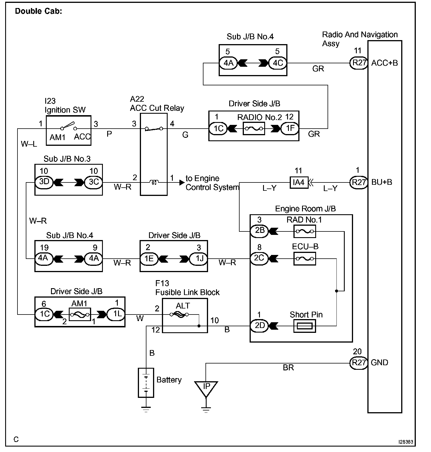 POWER SOURCE CIRCUIT (RADIO AND NAVIGATION ASSEMBLY)CIRCUIT DESCRIPTION