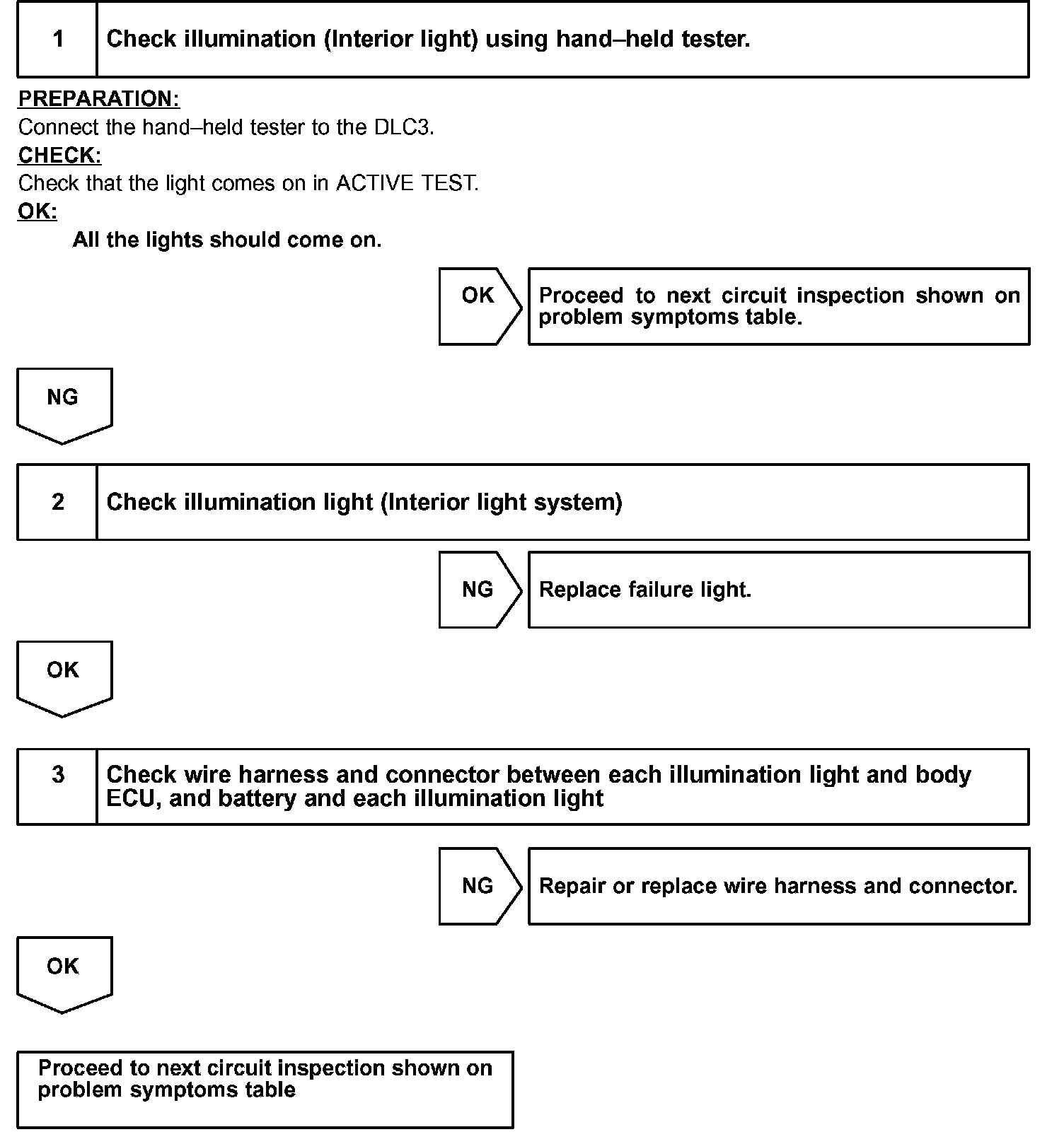 HINT: In case of using the hand-held tester, start the inspection from step 1 and in case of not using the hand-held tester, start from step 2.