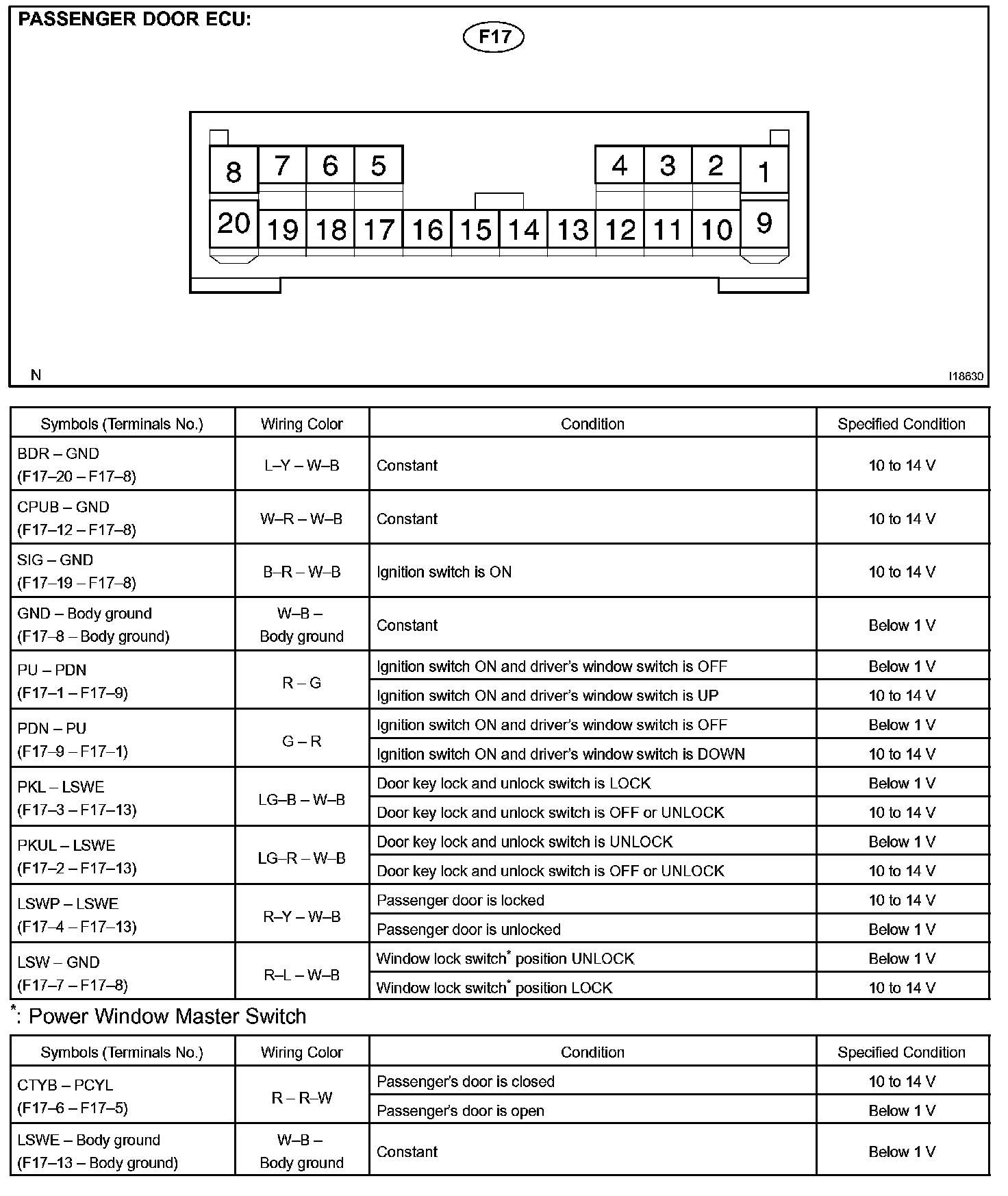 Pinout Values and Diagnostic Parameters