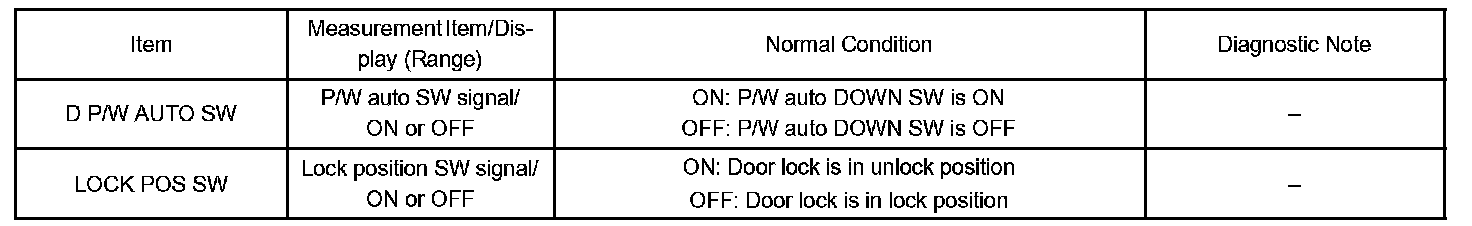 DATA LISTHINT: Using the hand-held tester DATA LIST allows switch, sensor, actuator and other item values to be read without removing any parts. Reading the DATA LIST early in troubleshooting is one way to shorten labor time.