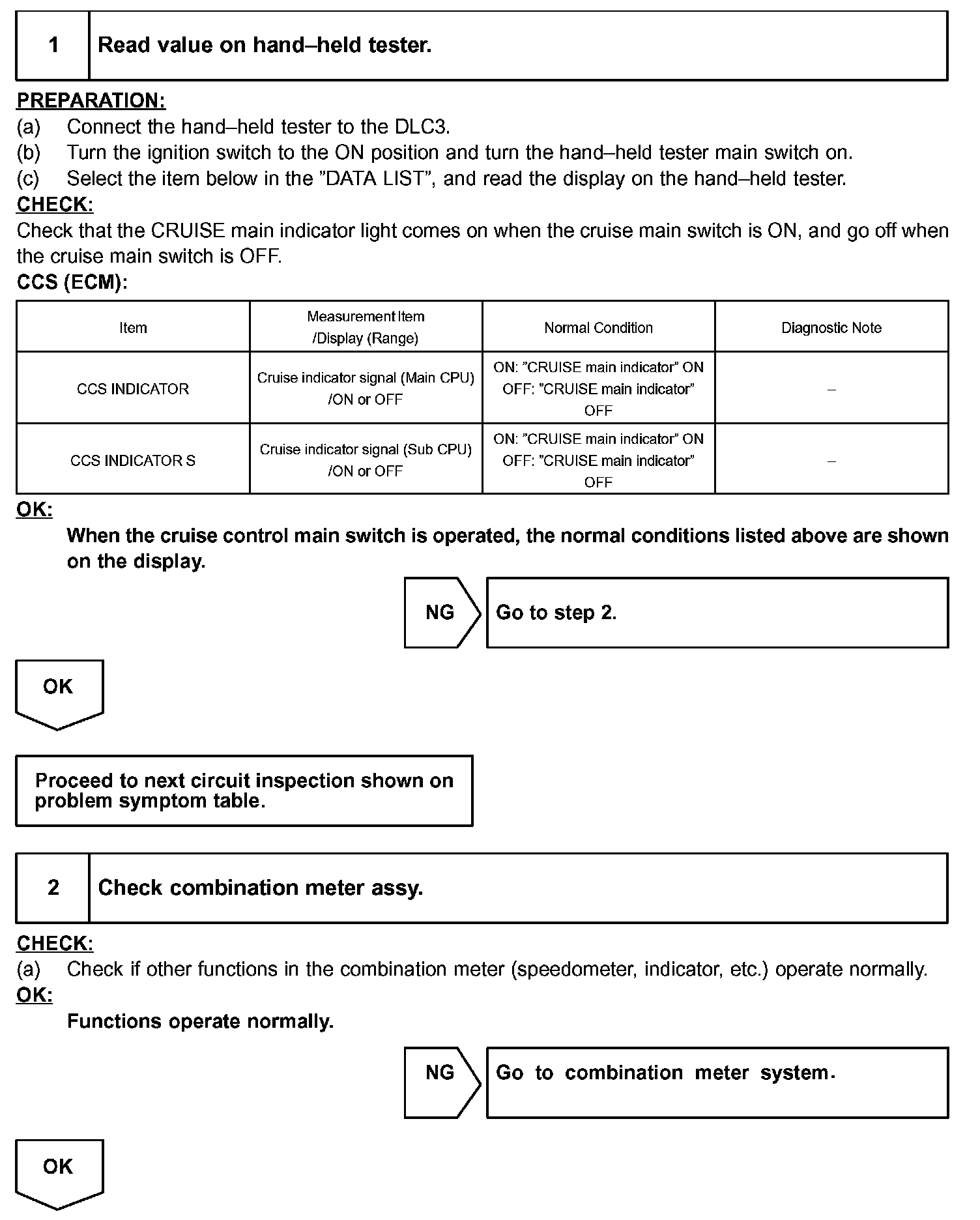 HINT: In case of using the hand-held tester, start the inspection from 1 and in case of not using the hand-held tester, start from step 2.
