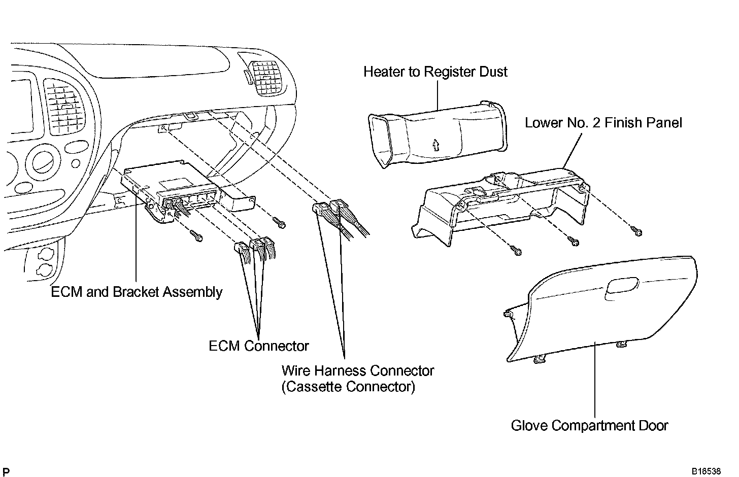 c. Remove the 3 screws, and disconnect the ECM from the body bracket.