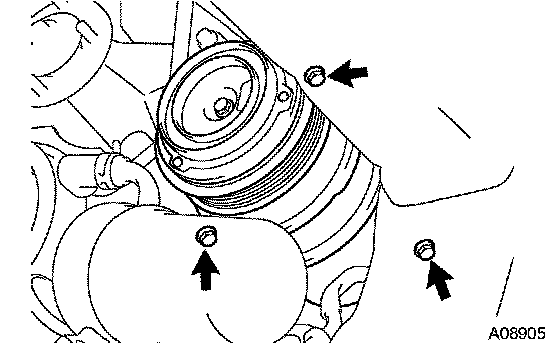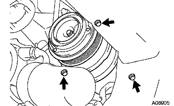 b. Remove the 3 bolts, and disconnect the A/C compressor from the engine.