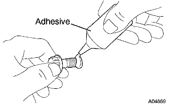 a. Apply adhesive to 2 or 3 threads of the mounting bolt end.