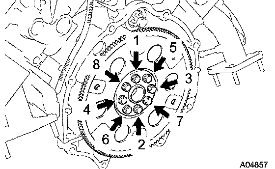 c. Install and uniformly tighten the 8 mounting bolts in several passes, in the sequence shown.
